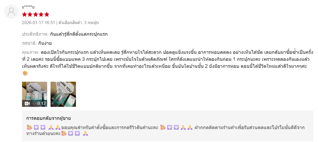 หลานยังบอกอีกว่ามีเลขที่ อย. และมีหลายคนที่เลือกใช้ผลิตภัณฑ์นี้ ลุงเลยตัดสินใจลองดู และหลังจากนั้นลุงก็รู้สึกสบายตัวขึ้นมาก