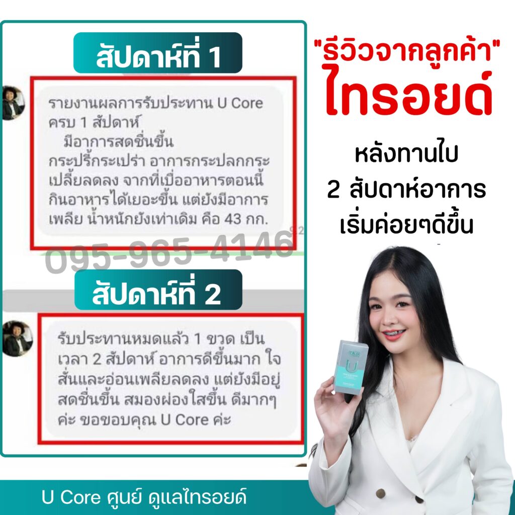 ญาติเลยแนะนำให้ลองกิน Balance U Core ดู เพราะว่าพี่ที่ทำงานของเค้าก็เป็นไทรอยด์เป็นพิษเหมือนกัน แต่อาการหนักกว่าจนหมอไม่สามารถผ่าตัดได้ แต่พอกินตัวนี้ไปได้แค่ 2 กระปุก อาการดีขึ้น คอบวมก็ยุบลงเลย