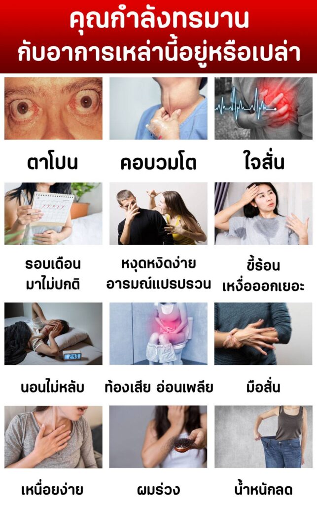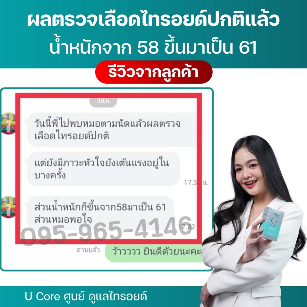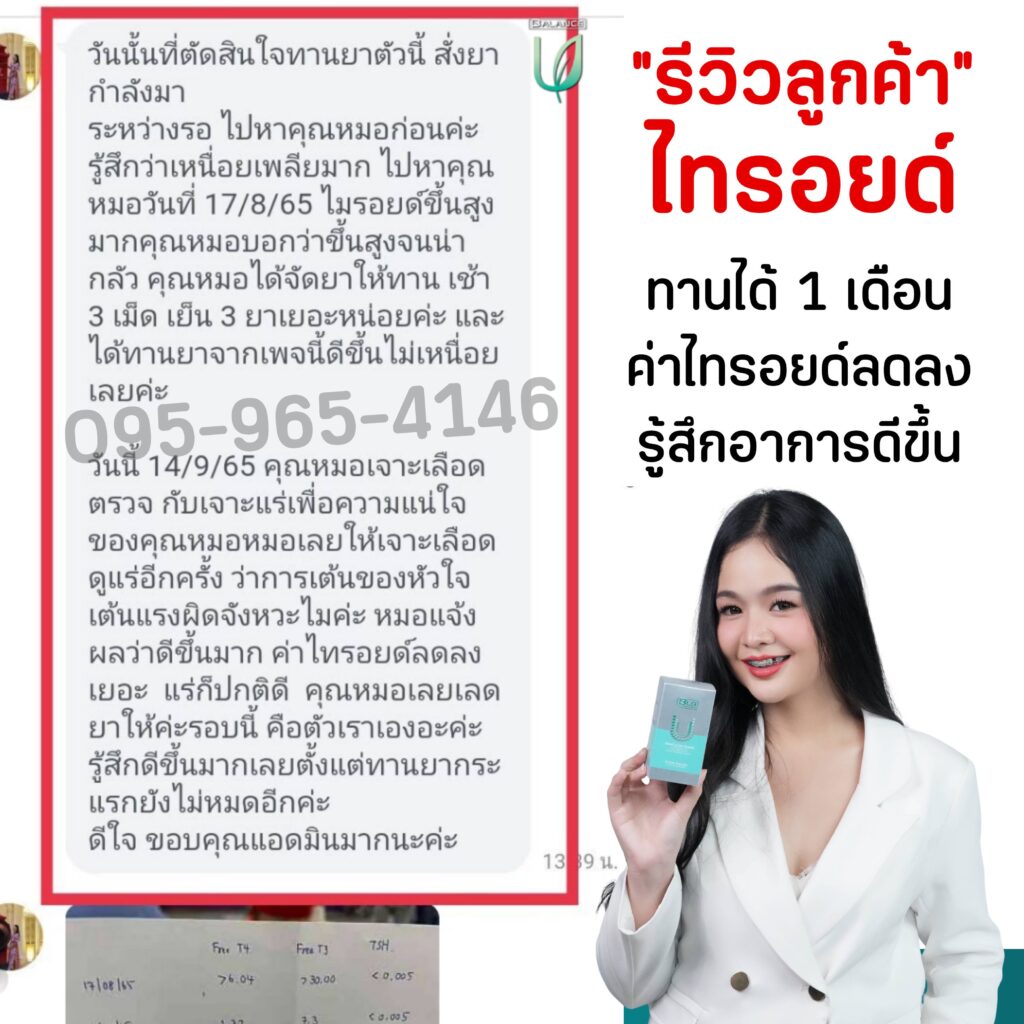 ปรากฏว่าหลังจากทานชุดนี้หมด ปัจจุบันนี้ก็ผ่านมา 3 ปีแล้ว อาการไทรอยด์เป็นพิษของป้าไม่ว่าจะ คอพอกโต ตาโปน นอนไม่หลับ เหนื่อยง่าย หายใจไม่ออก ใจสั่น มือสั่น ผิวแห้งดำ ไม่เคยกลับมามีอีกเลยค่ะ และน้ำหนักก็กลับมาเป็นปกติ